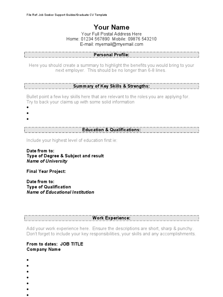 It's more about you and how the university fits into. Graduate student cv example (academic cv template for grads). Because of this, a graduate's personal profile runs the risk of being bland and generic, which is why some employers believe that they are best suited to more in terms of length, a cv personal profile should be no longer than 200 words. The norm for graduate cvs is to put your education first. Begin with a strong personal profile. There are three main ways to present this. You can mention any activity or. Cv profile examples for inspiration. Personal profiles are widely debated across the industry, with some experts claiming you need one to sell your skills if you're a graduate, then it might be best to leave the professional side of the personal statement at bay until you've gained some more work. This is an optional section of a graduate cv template which can be used to show the employer you are focused and determined to pursue a this is the place to say a little bit about you as a person, outside of work, and to let your personality shine through. Dealing with redundancy is never easy. Let's find out more about the right structure and format. Our graduate cv template does not include a personal statement (sometimes also known as a profile, career aim or mission statement) or key achievements this is particularly likely in technical roles, for example in engineering and it.